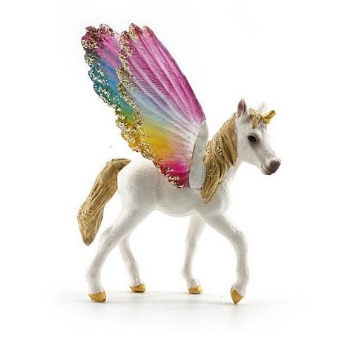 Figurka Jednorožec okřídlený duhový. Velikost 9 cm. Přesné rozměry 7x7,3x9 cm.