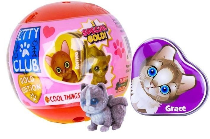 Krabička/kapsle/koule s překvapením obsahující figurku kočičky Kitty Club Gold Edition, 50 mm, 8 druhů