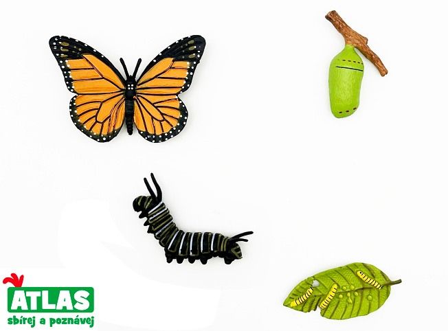 Figurka Motýl Monarcha stěhovavý 4 vývojové fáze 8 cm