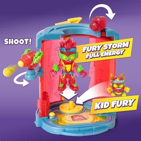 SuperThings S – Tajná základna Furry Storm – objevte tajné ležení Fury Storm! – Uvnitř najdete energii Kazoom a budete mít přístup do tajné oblasti, abyste získali skryté zbraně, brnění a super vozidlo-koloběžku. Obsahuje – tajná základna,exkluzivní figurka Kazoom Kid s plnou energií,exkluzivní SuperThing Kid Kazoom,skateboard,brnění,Kazoom Pod,2 x zbraně: palcát, čepel.