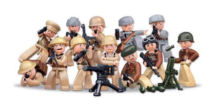12 designů figurek vojáků z druhé světové války (Francie, USA, SSSR,