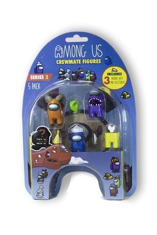 5 figurek populární licence Among Us v blistru. 1 figurka v blistru není vidět. Součástí balení jsou 3 náhradní pokrývky hlavy. Vhodné pro děti od 3 let.