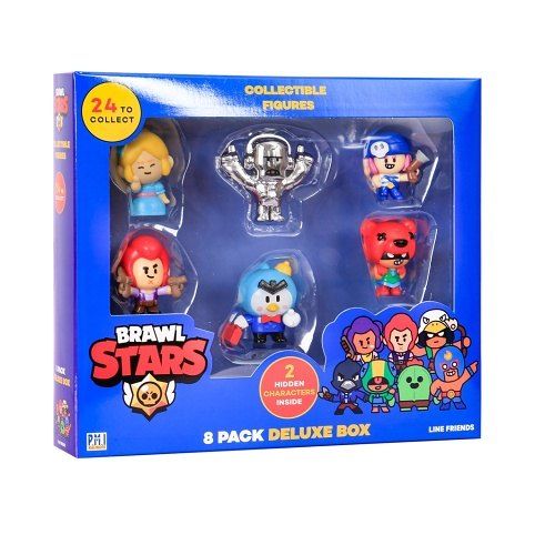 8 figurek populární licence Brawl Stars v krabičce. Balení obsahuje 8 figurek (2 figurky nejsou v balení viditelné) a 1 letáček. Vhodné pro děti od 3 let.