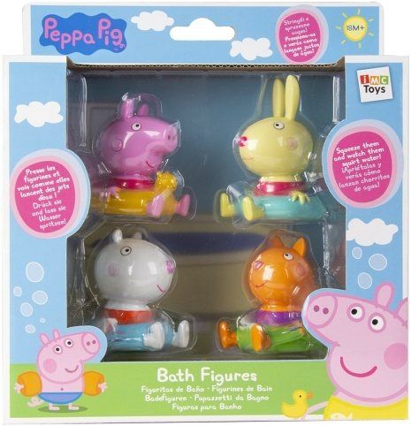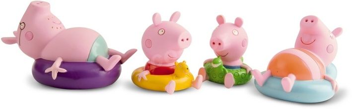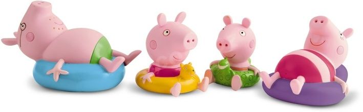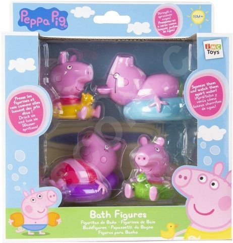 Prasátko Pepa z oblíbeného dětského seriálu velmi rádo dovádí v kalužích. Má také rádo koupání ve vaně, stejně jako vaše malé dítě. Hračka do vody Peppa Pig obsahuje čtyři figurky do koupele, které si ji umí náramně užít. Všichni jsou vybaveni plovacím kruhem, aby se jim dobře plavalo. Figurky lze po stlačení naplnit vodou a pak s nimi stříkat a dovádět. Hračka do vody Peppa Pig figurky do koupele je určena pro děti od 18 měsíců do 7 let.