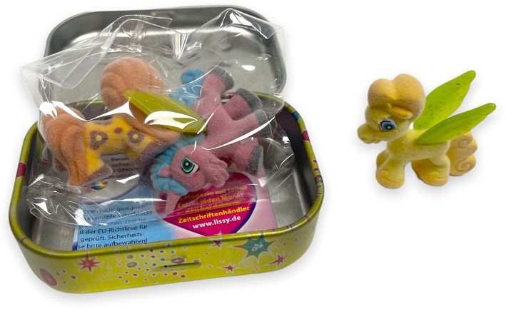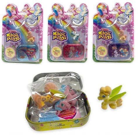 Krásné figurky Lissy Magic Ponys - pohádkových koníků. Balení obsahuje plechovou krabičku a 3 figurky koníků.