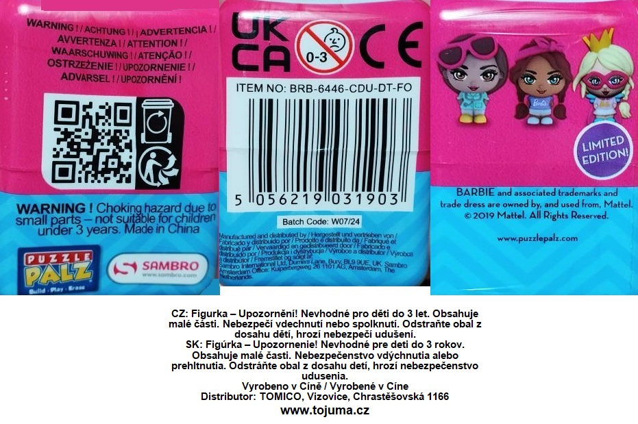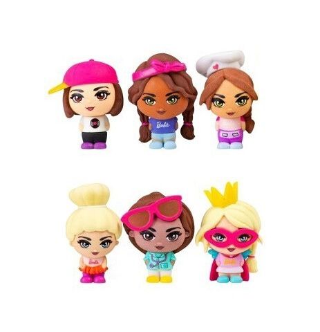 Krabička s překvapením obsahující figurky s motivem panenek Barbie - opravdová od Mattela, 2v1 figurka a skládačka. 6 druhů