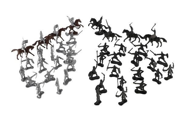 Sada rytířů na koních v provedení dvou barev. Vše je připraveno pro utkání dvou nepřátelských vojsk. S těmito válečníky mohou kluci snadno doplnit vojenská utkání při dobývání či obraně území a pevností. V balení je 52 ks figurek.
