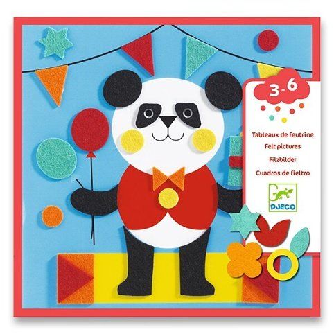 Sada pro tvoření Filcových koláží Djeco. Barevná veselá zvířátka k dotvoření pomocí dílků z plsti. Vhodné pro děti od 3-6 let.