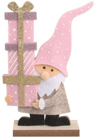 Filcový skřítek s dárky na postavení růžový 16 cm
