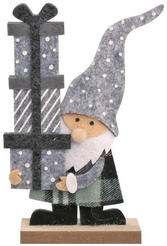 Filcový skřítek s dárky na postavení šedý 16 cm