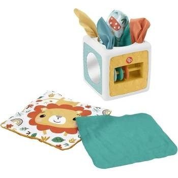 Zábavná kostka na kapesníky, se kterou si dítě rozvíjí jemnou motoriku a logické myšlení. Dítě si může vybrat 6 látkových čtverečků, podívat se do zrcadla nebo mnoho jiného. Rozměry kostky jsou 12 cm.