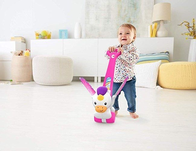 Fisher Price Chodítko Jednorožec s křídly – pří jízdě klapají měkkoučká různobarevná křídla a při zmáčknutí zvoní. Podporuje dětskou chůzi.