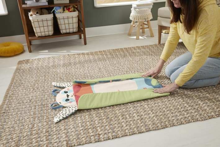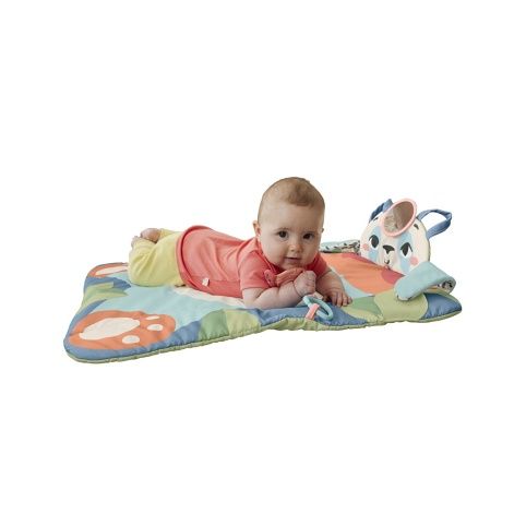 Hrací dečka s baculatou pandou od Fisher-Price® je inspirována zvířaty, na která upozornil Světový fond na ochranu přírody, používá látku vyrobenou z 90 % z recyklovaných plastů a je dodávána v obalu s certifikátem FSC, který podporuje odpovědné lesní hospodářství. Tuto velkou, všestrannou podložku 3 v 1 lze použít k ležení a hraní, pro čas na bříšku i při cestování. Tlapky podepírají výrazně kontrastní čelní panel pro dobu strávenou na bříšku nebo je lze použít k upevnění srolované podložky pro cestovní dobrodružství. Vrnící hračka a zrcátko pro sebepoznávání se spojují s panelem nebo se připevňují na poutka, aby hraní bylo stále inspirativní a zábavné. Podložku lze prát v pračce s vyjmutými hračkami.