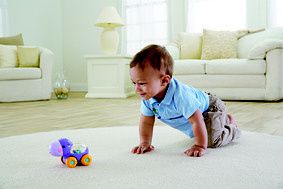 uvnitř, když dítě tlačí hračku před sebou, a úchvatně se odrážejí