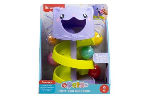 Miminka a batolata si zamilují kutálející se míček v Kočičkové kuličkové dráze od Fisher-Price®. Tato parádní kočička má stupňovitou kuličkovou věž se 4 snadno uchopitelnými barevnými přízovými kuličkami a 1 kuličku s chrastící rybičkou, kterou mohou děti vložit do tlamičky kočičky a poslat ji po dráze dolů, aby mohla zábava začít od začátku! Tato hračka je skvělým způsobem, jak si dítě při hře posiluje jemnou motoriku a zažívá vzrušující příčiny a důsledky. Barvy a provedení se mohou lišit. Věk 9m+