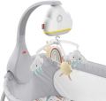 Fisher-Price® Kolotoč nad postýlku déšť s duhou má oslnivé závěsné hračky v podobě obláčků a sluníček a obsahuje 20minutovou melodii, která pomůže vašemu novorozenci uvolnit se a usnout. Praktický snímač pláče automaticky spustí uklidňující hudbu a kolotoč, když děťátko vydá zvuk! A když děti povyrostou, odejměte obláček z kolotoče a vytvořte z něj uspávací hračku na noční stolek. Vhodné pro většinu dětských postýlek, kolébek a přenosných ohrádek. Není určeno pro použití na ohrádky se stříškou nebo postýlky se stříškou. Určené na použití na postýlky od narození do 5 měsíců a na noční stolek od 5 měsíců. Na baterie: 3x AA (nejsou součástí balení)