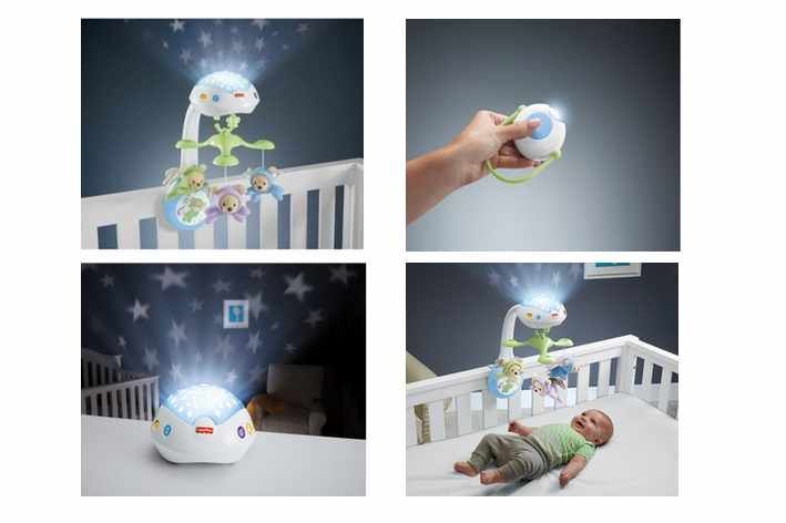 Motivy jsou na kolotoči umístěny tak, aby je usínající miminko vidělo dobře z polohy vleže. Promítá tancující světelné vzory na strop dětského pokoje a za doprovodu ukolébavek a přírodních zvuků miminko krásně usíná.