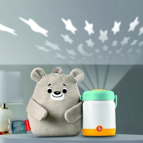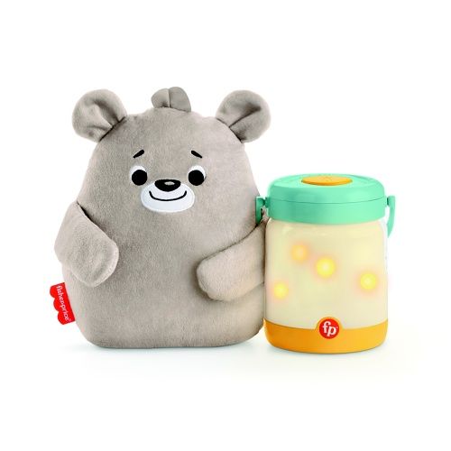 Usínáček s medvídkem a světluškami Fisher-Price® Baby Bear & Firefly začíná jako stolní akustický přístroj do Vašeho dětského pokoje s přizpůsobitelnou hudbou, zvuky, blikajícími světly nebo projekcí nad hlavou dítěte, která pomáhá uspávat Vaše dítě. Jak Vaše dítě roste, mazlivý plyšový medvěd se odpojí pro čas konejšení, zatímco z přenosné svítilny se stane uklidňující noční světlo pro batolata. Neboj se, medvěde, světlušky ti posvítí na cestu! Na baterie: 3x AA (nejsou součástí balení)