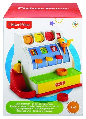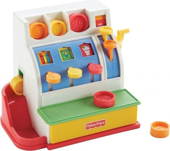 Hračka je inspirovaná klasickou hračkou z roku 1975 od Fisher-Price®. Pokladna pomůže zábavnou cestou naučit vaše děťátko číslice, barvy a počítaní. Pokladna se dodává s devíti zářivě barevnými plastovými mincemi, které slouží k placení. Přejete si platit