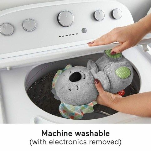 S Fisher-Price® Uklidňující koala s melodiemi se vaše miminko může oddávat příjemnému mazlení. Tato mazlivá plyšová hračka s melodiemi má měkké svítící bříško, které se pohybuje nahoru a dolů v uklidňujícím rytmu, jako kdyby doopravdy dýchala. Průběh uspávání si můžete přizpůsobit nastavením časovačů, hudby nebo zvuků přírody a barevných světel. Tato uklidňující koala s melodiemi pro kojence s řadou různých povrchů, které může vaše miminko ručičkami prozkoumávat, lze prát v pračce. Na baterie: 4x AA (nejsou součástí balení)