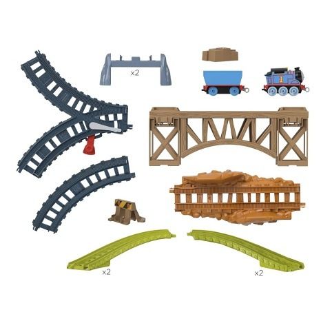 Fisher-Price® Vláčkový set s tahací kovovou mašinkou ze seriálu a filmů Mašinka Tomáš. Každý set kolejí s oblíbenými postavičkami, jako jsou Tomáš, Percy a Diesel, obsahuje jednu kovovou mašinku. Děti mohou tyto sety kolejí sbírat a spojovat a vytvářet ta