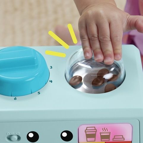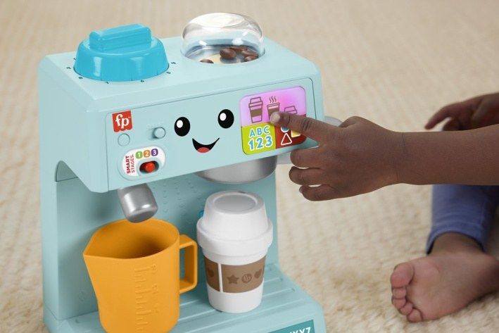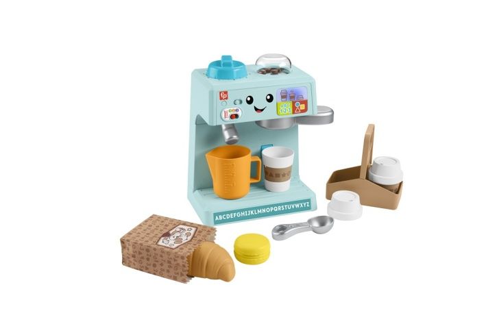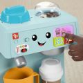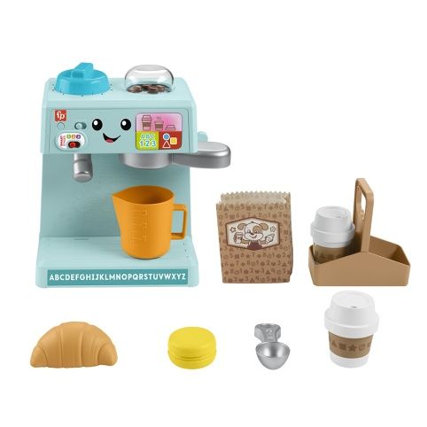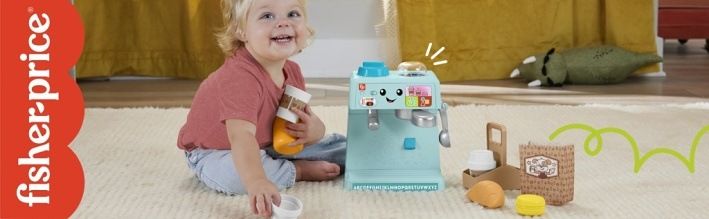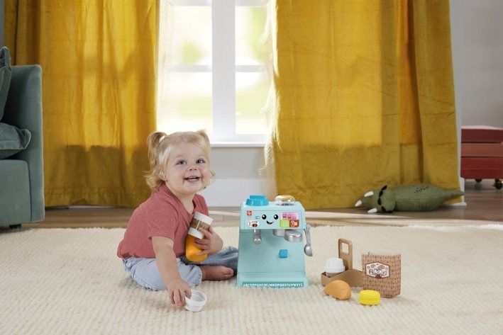 Malí baristé mohou připravovat, podávat a sdílet kávu s tímto zábavným herním setem pro batolata od Fisher-Price®! Stisknutím tří tlačítek, která učí přípravu kávy, otáčením kolečka pro napěnění nebo při plnění šálku děti aktivují více než 75 písniček, zvuků a frází! Zábavné je, když děťátko pohybuje mlýnkem na kávu tam a zpět, a vyskakují tak kávová zrna! Součástí je 9 herních doplňků: 2 kelímky na kávu s víčky, lžička na míchání, croissant, taška na měkké zboží s sebou, kelímek na mléko a nosící podložka na dva šálky, kterou využijí děti na cestách! A to vše s funkcí Smart Stages™, která dětem pomáhá učit se abecedu, barvy, počítání a mnoho dalšího! Každé dítě se vyvíjí jinak rychle a díky Smart Stages™ můžete zvolit takovou úroveň učení, která je pro vaše děťátko zrovna nejvhodnější. Pomocí tlačítka zeměkoule si můžete vybrat jazyk: polština, maďarština, čeština, slovenština nebo angličtina. Barvy a provedení se mohou lišit. Na baterie: 3x AA (jsou součástí balení)