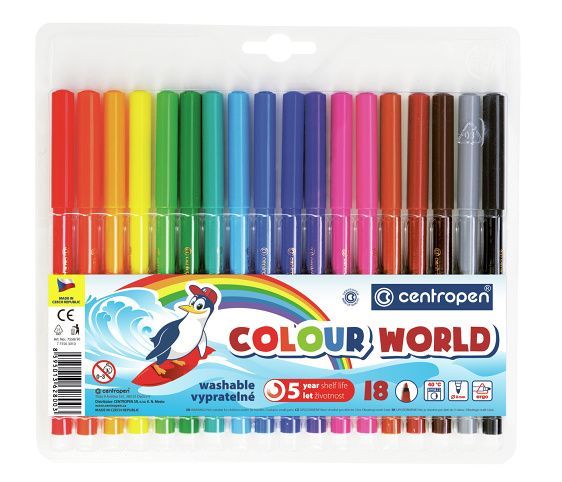 Sada popisovačů s ventilačním bezpečnostním chránítkem, ergonomický úchop pro lepší držení. Jsou vyrobeny z polypropylenu. Zdravotně nezávadný, vypratelný inkoust, odolávají vyschnutí až 5 let. Válcové hroty jsou odolné proti zatlačení. Barvy jsou syté a zářivé. Praktické balení s eurozávěsem.Mix barev Šíře stopy: 1mmVálcový hrot