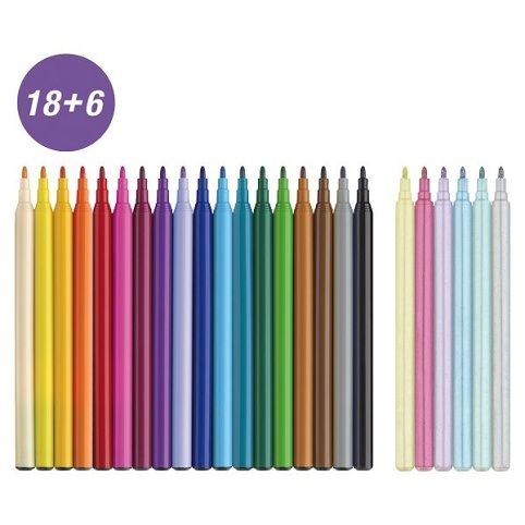 Souprava 24 ks fixů ( 18+6 ) Faber-Castell Unicorn s tématikou jednorožce. Fixy mají brilantní barvy a silný hrot, odolný proti nešetrnému zacházení.