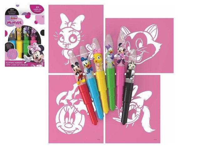 Objevte kouzlo tvoření našimi foukacími fixami! Syté odstíny fix s motivem minnie si zamiluje každé dítě. Balení obsahuje 6 barevných foukacích fix s potiskem a 4 barevné papírové šablonky v oblíbených pohádkových motivech.