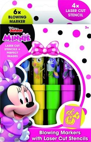 Boží foukací fixy s motivem Minnie! Vaše děti určitě vytvoří zajímavá díla podle šablonek nebo dle vlastní fantazie. Balení obsahuje 6 barevných foukacích fixů a 4 barevné papírové šablonky v oblíbených pohádkových motivech.