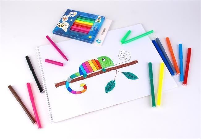 Fixy naplněné vodou ředitelnou barvou. Snadno omyvatelný inkoust na psaní, kreslení, vybarvování Plastové tělo a uzávěr.