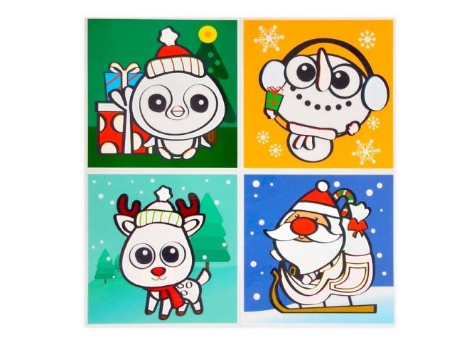 Fólie do koupelny, na kterou lze malovat vodou. Vyzdobte dětem koupelnu zábavnými obrázky, které přilepíte na kachličky, zrcadlo či okna. Obrázky jsou na fólii, která antistaticky přilne na hladký povrch. Navíc po navlhčení obrázku vystoupnou barvičky. Po zaschnutí barvy opět zesvětlají. Obrázek lze opakovaně olepit a přilepit na jiné místa. Na obrázcích najdete vánoční tématiku. Návod na použití: Přetřete bílé plochy vodou a obrázek se začne sám vybarvovat. Po vyschnutí lze obrázky vybarvovat opakovaně. Upozornění: Nevhodné pro děti do 3 let. Nebezpečí udušení. Může obsahovat malé části. Set obsahuje 4 obrázky.