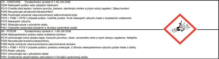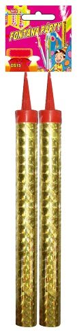 Žádná párty se neobejde bez těchto párty fontán! Jedno balení obsahuje 2 kusy barevné párty fontány o délce 15 cm s efektem zlatých hvězdiček. Délka trvání 50 sek. Prodávána pouze po 2 kusech a je určena pouze pro venkovní využití. P210 Chraňte před teplem, horkými povrchy, jiskrami, otevřeným ohněm a jinými zdroji zapálení. Zákaz kouření. P250 Nevystavujte obrušování, nárazům, tření. P280 Používejte ochranné rukavice, ochranný oděv, ochranné brýle. P370 + P380 + P375 V případě požáru: Vykliďte prostor. Kvůli nebezpečí výbuchu haste z dostatečné vzdálenosti P372 Nebezpečí výbuchu. P501 Odstraňte obsah, obal předáním k likvidaci oprávněné osobě