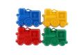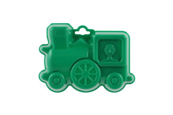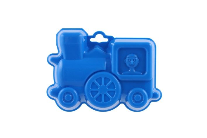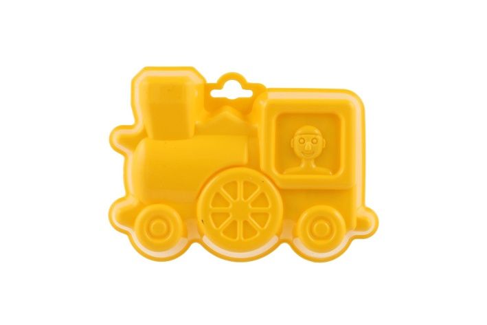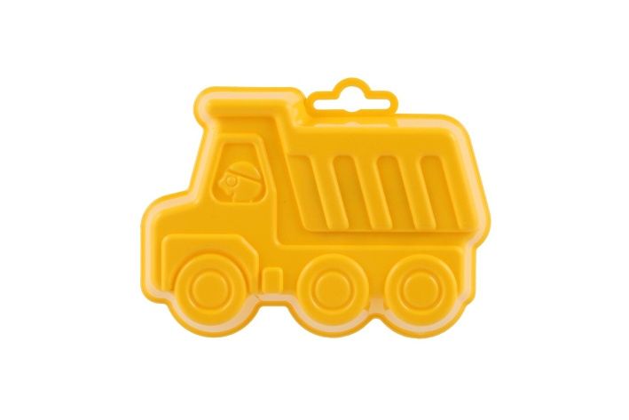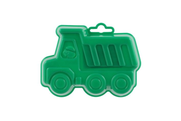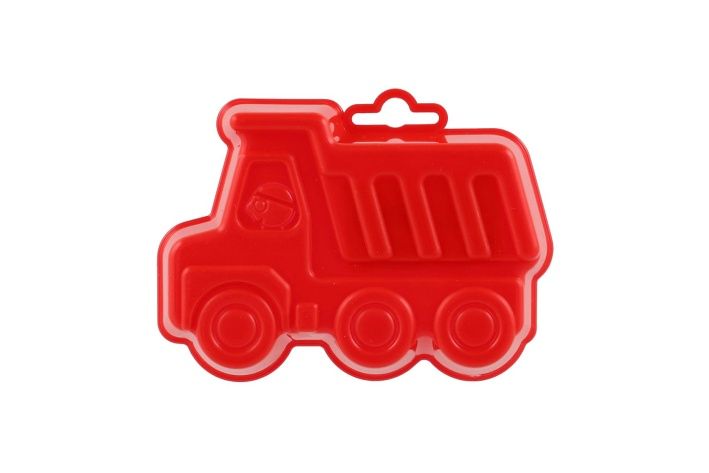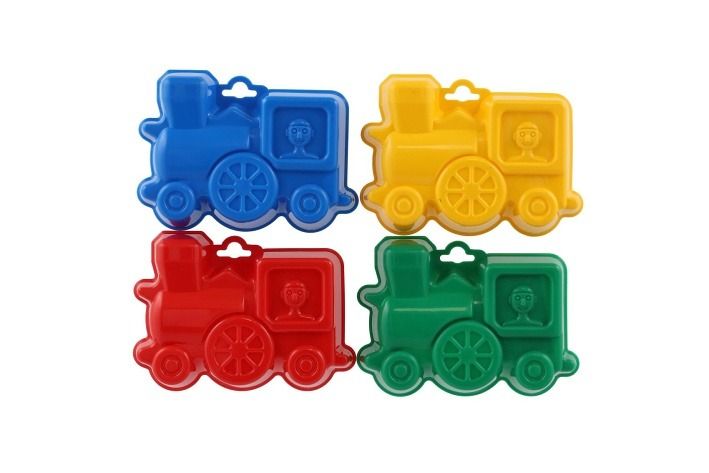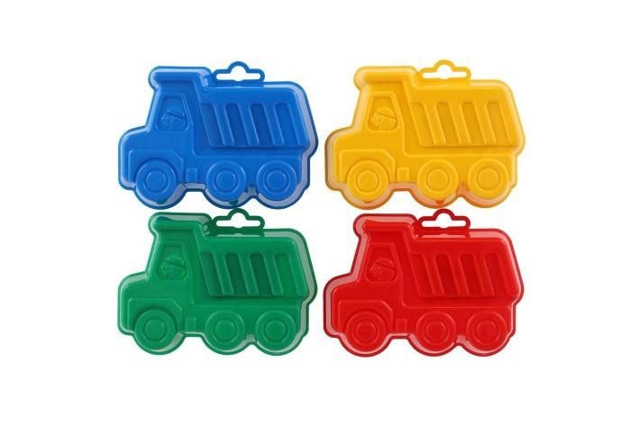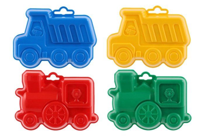 Plastové bábovky na písek ve tvaru dopravních prostředků.