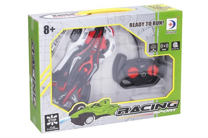 Formule RC na dálkové ovládání. Rozměry 20,5x9,5x5,5 cm. Světelné efekty. 3xAA baterie do auta, 2xAA do ovladače nejsou součástí.