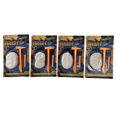 Fosilie dinosaurus DIY vykopej kostru. Rozměry balení 6x1x15 cm. Obsah balení - fosilie, kladívko, sekáč. 4 varianty - triceratops, brontosaurus, stegosaurus, t-rex.