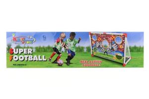 Fotbalová branka s pláštěm s otvory pro ještě větší zábavu při kopání. Materiál plast. Baleno rozložené v krabici. Balení obsahuje 18 dílků k sestavení branky + plášť + síť a měkký nafukovací míč. Rozměry Složené branky 116x76 cm. Rozměry balení cca 80x21x9 cm. Věk 3+
