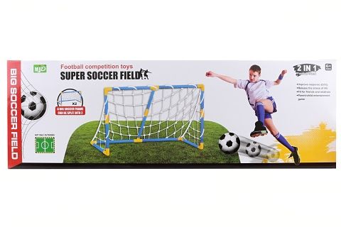 Fotbalová branka. Lze využít jako jednu velkou branku o velikosti 180x120x90 cm, nebo setavit 2 menší branky o velikosti 90x60x40 cm. Baleno v krabici. Rozměry balení 88x29x8 cm. Možno využít uvnitř i venku. Věk 6+