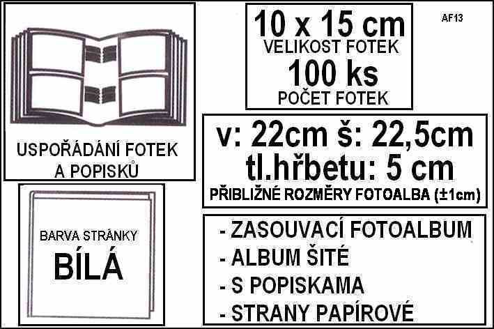 - FOTOALBA, rámečky / PODROBNÉ TŘÍDĚNÍ / 10x15cm / 200 kusů fotografií / S popiskama fotek / 2 kusy fotek nad sebou / Popisky vedle fotek / Album šité v:22 š:23 h:5 (AF04)