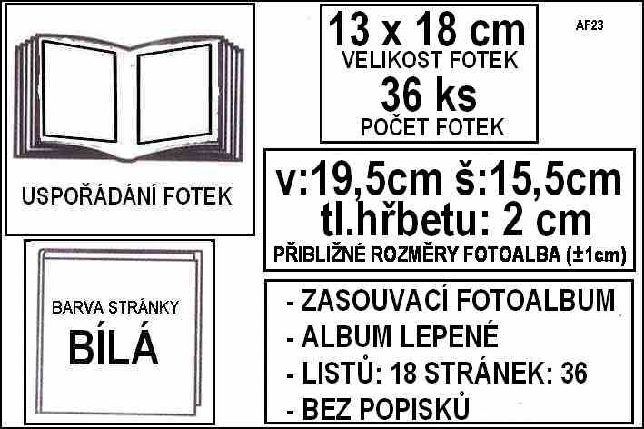 - FOTOALBA, rámečky / PODROBNÉ TŘÍDĚNÍ / 13x18cm / 36 kusů fotografií / Bez popisků fotek / 1 kus fotek na stránce / Album lepené (AF23)