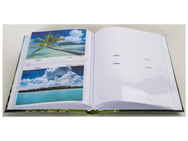 Zasunovací fotoalbum na 100 fotografií 10 x 15 cm (2 foto nad sebou). Rozměr alba 19 x 25 cm, druh vazby - šitá kniha.