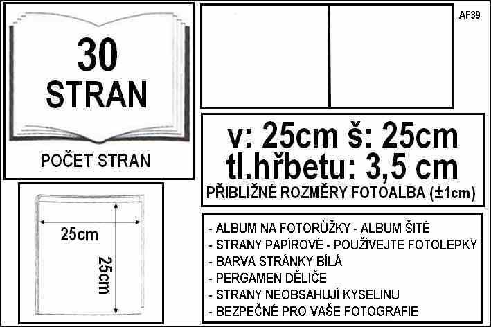 - FOTOALBA, rámečky / PODROBNÉ TŘÍDĚNÍ / NA FOTORŮŽKY / Album šité / Rozměr alba v:25m š:25cm / 30 str.-barva listu BÍLÁ (AF39)