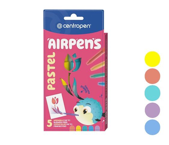 Foukací fixy na papír- pastelové barvy- zdravotně nezávadný inkoust- snadno smyvatelné a vypratelné- 1 šablona