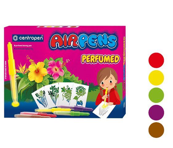 Sada parfemovaných foukacích fixů s vnitřní náplní- určeny na papír- zdravotně nezávadný inkoust s vůní květin- inkoust snadno smývatelný a vypratelný- ventilační chránítko, po použití řádně uzavřít- balení obsahuje 5 kusů foukacích fixů, 8 šablon s motivy květin a 10 archů A4- mix barev