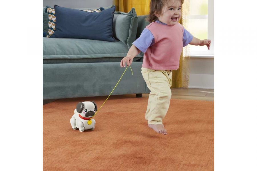 Chodící mopslík od Fisher-Price® je ideální pro malé milovníky pejsků. Tato tahací hračka pro batolata je roztomilý zvířecí miláček, kterého mohou děti samy venčit. Jakmile děti zatáhnou za vodítko, jeho nohy a uši se začnou pohybovat a mopslík vydává líbivý štěkavý zvuk, který děti povzbuzuje k další chůzi a pomáhá posilovat jejich hrubou motoriku. Nejsou potřeba žádné baterie. Barvy a provedení se mohou lišit. Věk 12m+