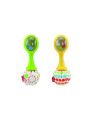 Dvě dětské rumbakoule s průhledným “okénkem”, přes které je vidět a slyšet velké, barevné chrastící kuličky, rozveselí každou dětskou tvářičku. Rumbakoule jsou opatřeny měkkými rukojeťmi vyrobeny z barevné, rýhované textilie.