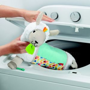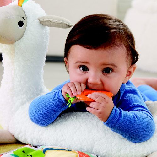 Součástí roztomilé lamy je také oboustranná přikrývka s kapsou, třemi hračkami a zrcátkem, které lze připevnit do tlamičky lamy nebo na hrací deku! Váš malý badatel si zamiluje objevování všech částí, zvuků a materiálů svého přítulného kamaráda. Kousátko a mnoho povrchů k prozkoumání pomáhají během hraní vašemu děťátku v rozvoji hmatových smyslů. Hračka pomáhá děťátku při pokusech držet hlavičku a tělíčko během pasení koníčků a tím posílit jeho krční svaly a hluboké svalstvo.Věk 0+
