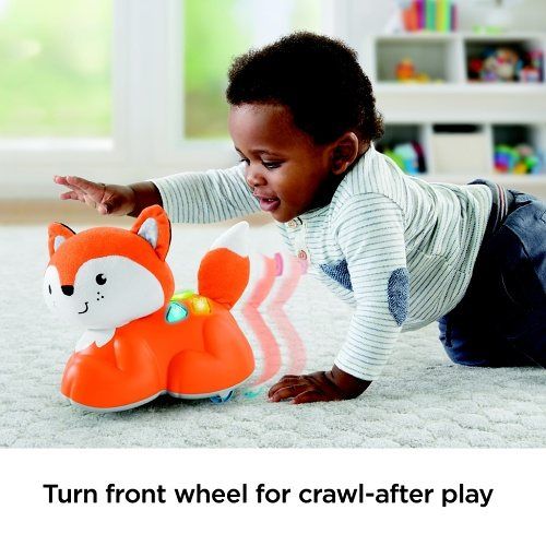 Sedící děti si zamilují možnost kdykoliv objevovat jemňoučkou tvář jejich kamarádky lišky nebo její hebký plyšový ocásek. Mačkáním tlačítek roztočí lišku za doprovodu hudby a zvuků. Jak vaše děťátko roste, otočte předním kolečkem pro změnu režimu a sledujte, jak liška dělá kotrmelce (dokonce i na koberci!) a tím povzbuzuje vaše děťátko, aby ji následovalo. Jen pojď za mnou maličké! Barevná světýlka, zábavná hudba a měkké textury pomáhají rozvíjet zrakové, sluchové a hmatové smysly, zatímco se vaše děťátko skvěle baví.Věk 6 měsíců+