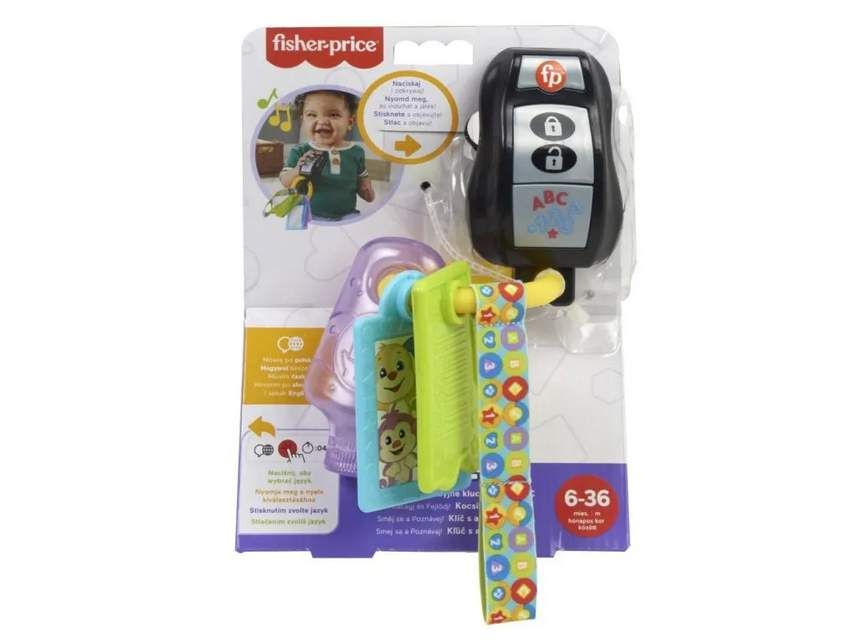 Zaneprázdněná miminka budou nadšená z těchto klíčů se 4 zábavnými trendy hračkami a látkovou visačkou od Fisher-Price®. Hračka gel na dezinfekci rukou má pestrobarevné chrastící korálky, kterými maličké může třást. Hračka klíč od auta nabízí hudební tlačítko, které po stisknutí přehrává zábavné písničky a fráze. Hračka kousátko kartička do fitka má motiv štěňátka a ikonky, které může dítě prozkoumávat hmatem. Hračka fotografie obsahuje zrcátko na zadní straně, aby se děťátko mohlo vidět a zkoumat samo sebe. Tyto aktivity podporují rozvoj jemné motoriky a zapojují smysly miminek. Určeno pro kojence a batolata od 6 do 36 měsíců.
