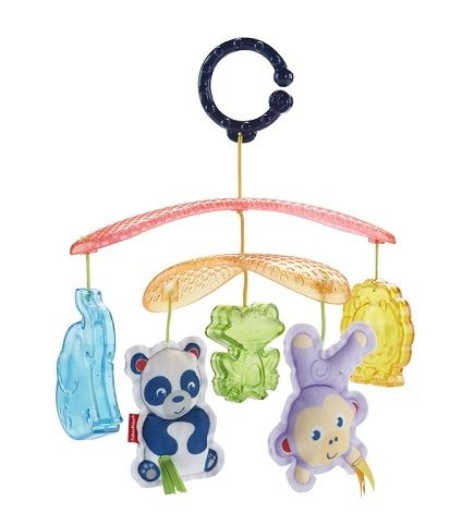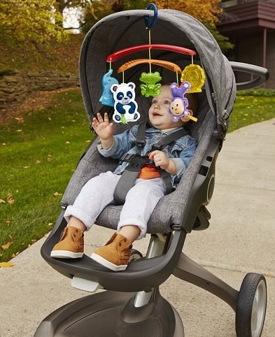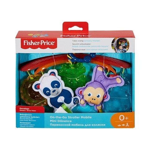Kolotoč na kočárek od Fisher-Price promění každý výlet ve vzrušující dobrodružství! Miminku se nad hlavou v kočárku pohupuje pět barevných zvířátek, které jej podněcují, aby se za nimi natáhlo a hrálo si s nimi. Sluneční paprsky svítí přes pohyblivá ramen